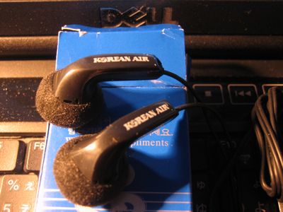 ビジネスクラスには使い捨てではないもっと高級なヘッドフォンが配られていました。