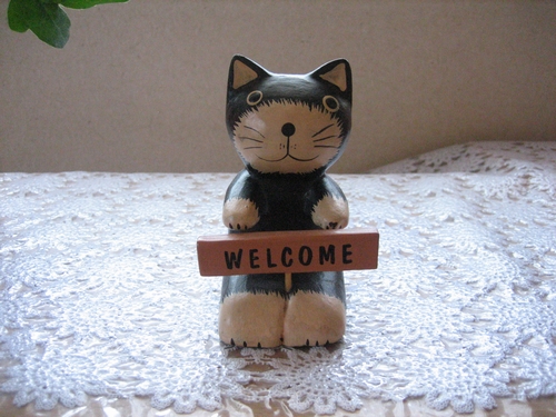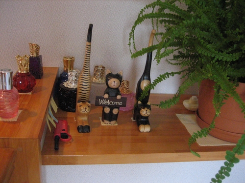 これは階段の一角に陣取っているネコたち。バリかマレーシアで購入した物です。アロマの香りと共に皆さんをお迎えします。