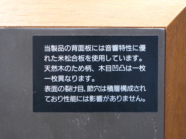 ちなみに米松(ベイマツ)とは主に北米を産地とする,固くて重い木材です。美しい木目なので,スピーカーですと,通常は正面に使い,クリアー塗装で仕上げているものが多いです。
