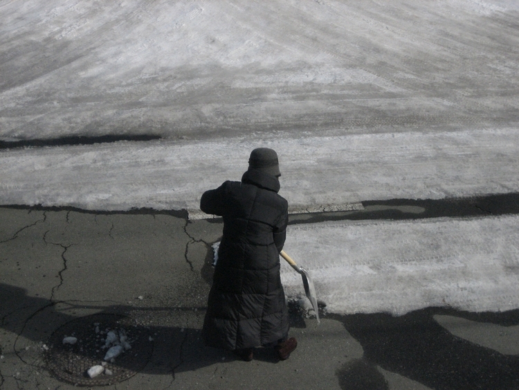 「せっかちだなあ。例年3月,4月とドカ雪が降るでしょうが。無駄なことを…」と呟きつつ,氷割りに励むおじいさんたちを眺めながら車を進めます。