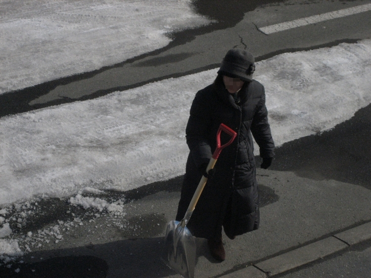 まだ2月だというのに道路の「氷割り」をしている気の早いおじさんたちがいます。