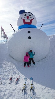 今年はゲレンデにこんな雪だるまができていました。