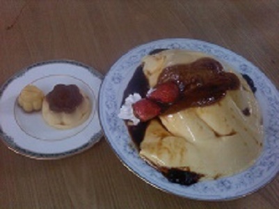 牛乳1リットルを使って作った、巨大プリンです。