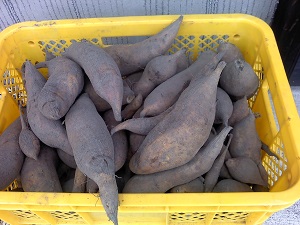 練習に夢中で画像が少なかったので我が家で収穫したさつまいもとヤーコンです。