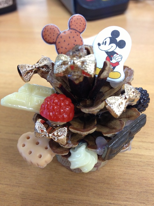 上に松ぼっクリを載せてグルーガンで接着とか。