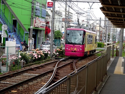 ここから隣駅の「荒川車庫前」までが、バラの花が一番多く、また綺麗な撮影ポイントである。