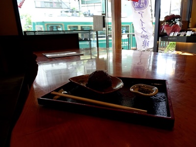 バラ号を待つ間に「いっぷく亭」で休み、「おはぎセット」を注文し店内からのんびりと都電の到着を見ていた。