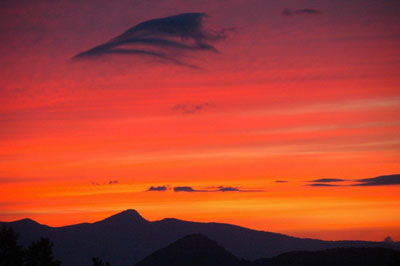 またある日のことだ。太陽が山の陰に沈んで行くのを見た。とても綺麗だった。この写真を撮ろうと思い、町の人に聞いた。『今の時期は何時頃にどちらの方向に太陽は沈むのですか?』Mさんは言った。