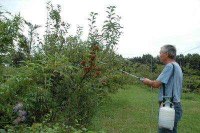 果樹園のリンゴに虫食いが出ているので、壮瞥町のIさんに電話で対策を相談する。