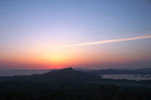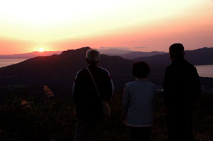 私の女房は東京に戻っていていない。10分ほどで頂上に着く。初めて見る絶景に高橋夫妻は声も出ない。有珠山に沈む真っ赤な夕陽は感動ものである。