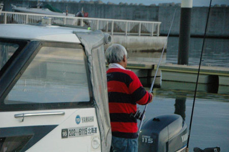 師匠には全く当たりもなく終った。私は初めての夜釣りで、しかも釣れ掛かっただけで満足だ。