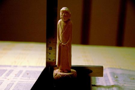 添付写真は私の創作の釈迦立像と、もう一体はハワイの仏像展に出す為に制作中の阿弥陀如来像である。謝らないで済むように、社長は仏像でも彫って心を清めて欲しい。