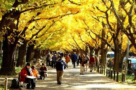ここはお洒落な道ということもあり、よくファッション雑誌にも登場する。私がここを通り掛かった12月5日は丁度、『銀杏祭り』をやっていた。並木道では写生をする人、写真を撮る人、散歩をする人で溢れていた。