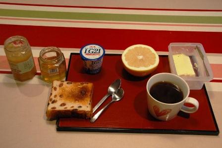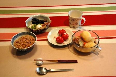 朝は6時前に起きて、パソコンから小金井通信を送信する。そして、その後、自分で朝食の支度をする。