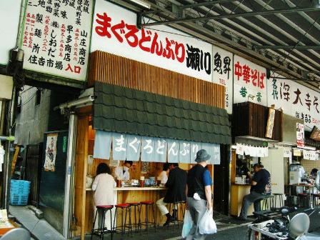 築地市場には多くの食べ物屋がある。