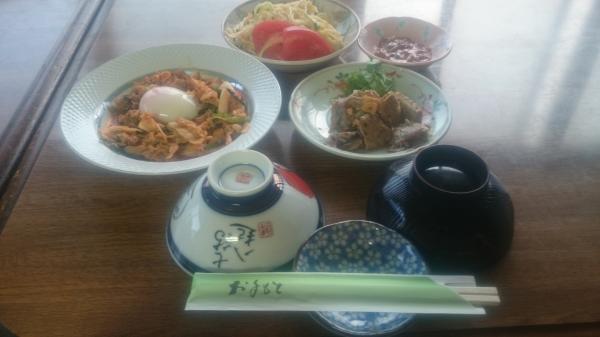 当旅館特製 スタミナ豚キムチ温泉卵とともに