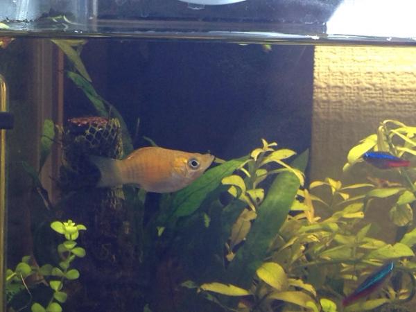 バルーンモーリーという熱帯魚で、丸々とした体にクリクリした目、人懐っこい性格をした魚で、
