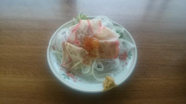 ビールのつまみに当旅館手作り 煮豚 芥子とともに