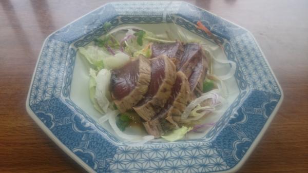 秋も旬の戻りかつお山葵ドレッシング サラダ風