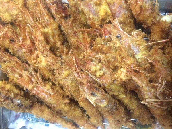 定番のエビフライに鶉の串をつけてみました