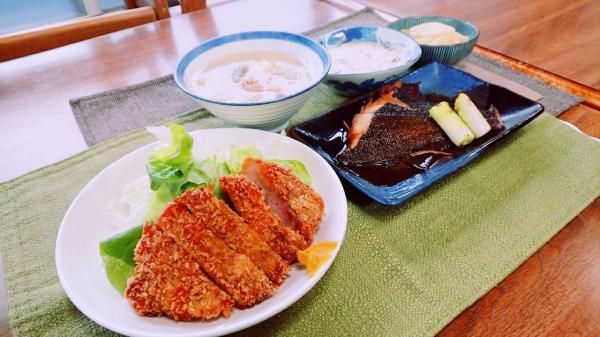 今日のメインは、道産豚ロースの厚切り豚カツです。