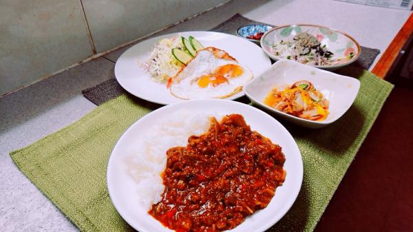 茄子と、ちりめんじゃこをゴマ油で炒め、