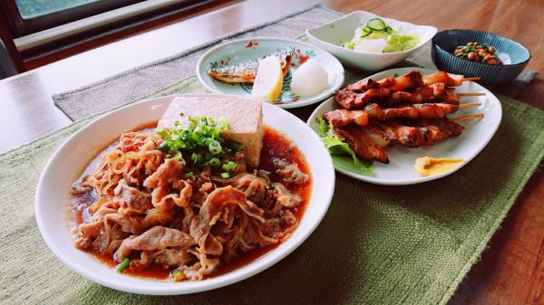今日のメインは牛肉豆腐です。たっぷりの牛肉と
