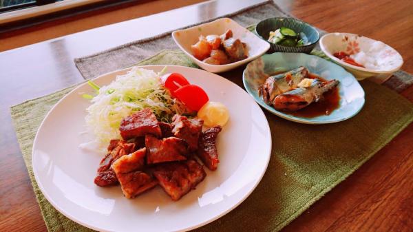 今日のメインは、豚肩ロース厚切りの生姜焼きです。