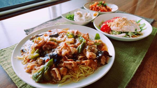 豚キムチ炒めは、韓国産キムチを使い、たっぷりの