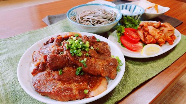 じっくり焼いた豚肩ロースを甘辛の豚丼の