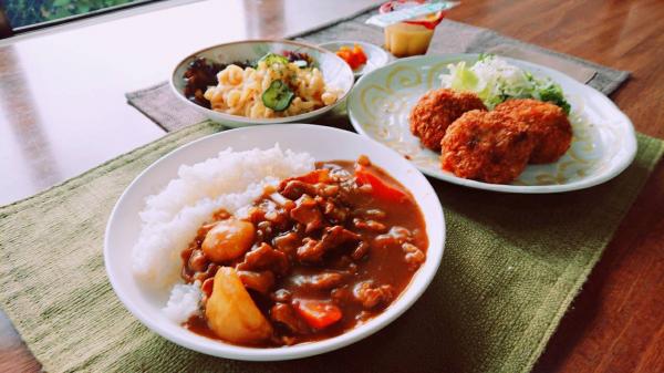 今日のメインは、たっぷり豚肉のポークカレーです。