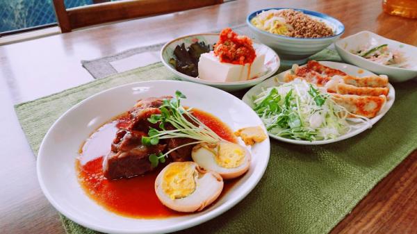 道産豚肩ロースと煮玉子のオイスターソース煮です。