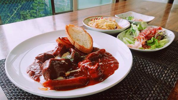 牛肉で作ったハヤシライスです。