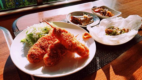 玉ねぎと一緒に串に刺し、串かつにしました。