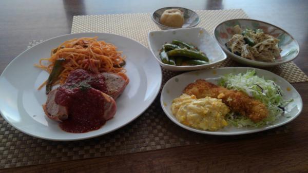 今回の付け合わせはナポリタンですが、