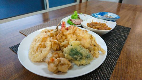 いつものように、今日の天丼は皿盛りです。