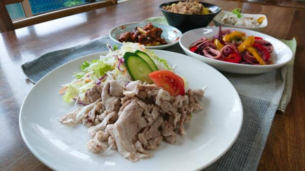 豚しゃぶサラダは、豚肉を茹でたあと、油と