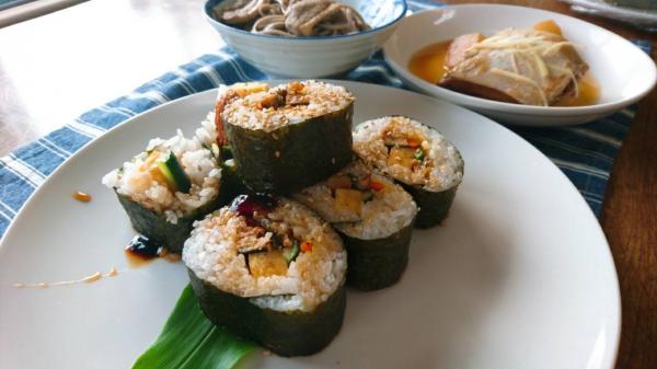 薄焼き卵を焼くように、ひとつずつ焼き、具を入れて巻きます。