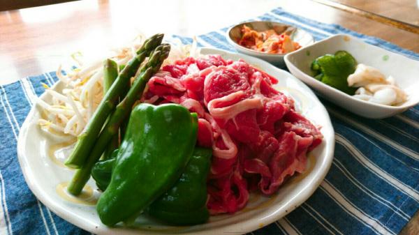 焼きうどんは、豚バラ薄切り肉とキャベツを具にしました。しっかり焼き付けると醤油の香りが立って美味しいです。