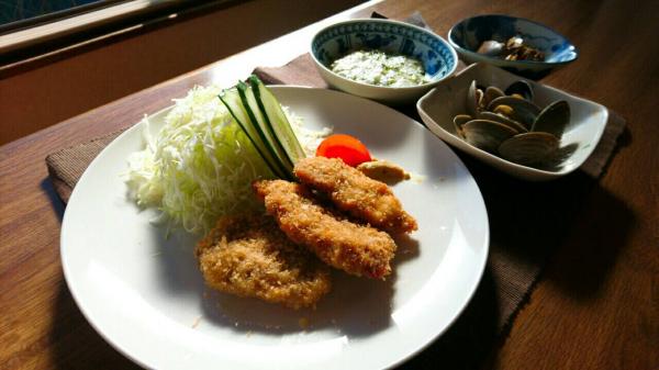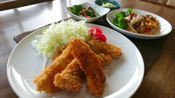 今日のフライ盛り合わせは 鶏肉とエリンギに、