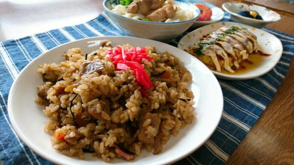塩唐揚げがメインなので混ぜ込みわかめを入れた