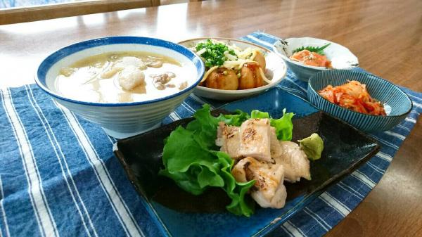 鶏チャーシューと。きゅうりの和え物は