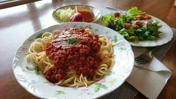 本日は大盛りミートソーススパゲッティです。