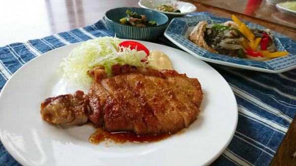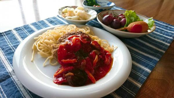 付け合せはペペロンチーノスパゲッティでシンプルに。
