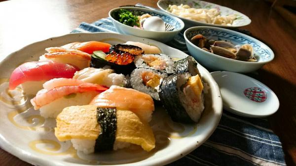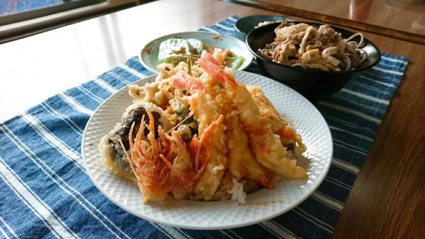 旬の本ます、エビ、大葉、しめじ、生シイタケを具にしました。