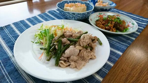 豚バラ薄切り肉をにんにく塩ダレで炒めました。