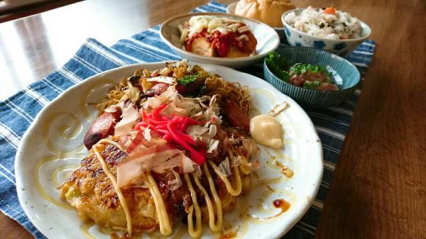 今日は、週末の疲れた身体に効くボリュームたっぷりのメニューです。お好み焼きは豚ミックスです。