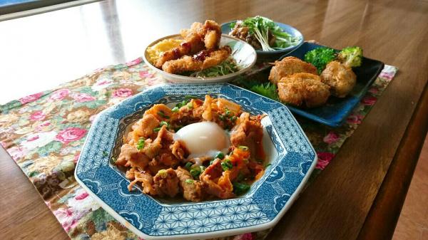 にんにく、生姜を入れた甘辛ダレで絡めました。