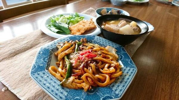 豚汁と焼きうどんでお腹いっぱいになりそうです。