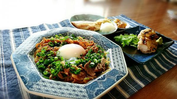 ご飯のおともに甘辛ユッケです。